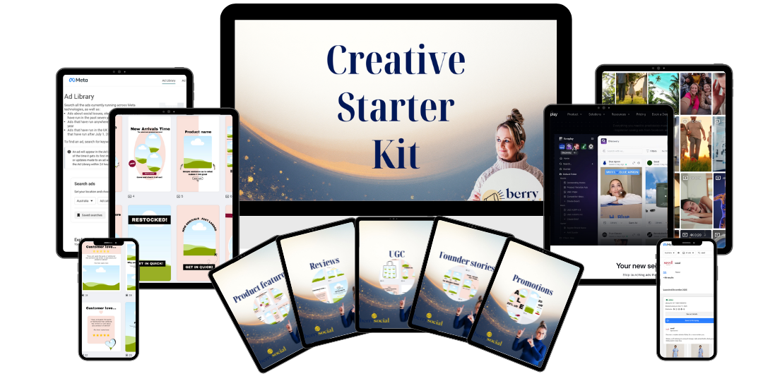 The Creative Starter Kit helps you get unstuck when it comes to ad creative for Meta ads. It is a done for you toolkit of Canva templates, beginner friendly guidance and real ad inspiration so you can create scroll stopping visuals for your Meta ads.  Save time, skip the guesswork and feel confident publishing ads.